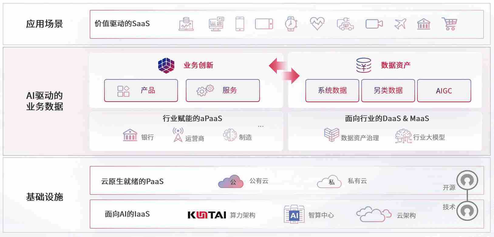 数字时代,,围绕企业数字化转型的关键要素,,,,EBPAY钱包数码开创性的提出数云融合战略和技术体系框架,,,着力在云原生、、数字原生、、、AI原生和信创产业上架构产品和服务能力,,,为处在不同数字化转型阶段的快消零售、、汽车、、、金融、、医疗、、政企、、、、教育、、运营商等行业客户提供泛在的敏捷IT能力和融合的数据驱动能力,,构建跨界融合创新的数字业务场景和新业务模式,,助力企业级客户建立面向未来的核心能力和竞争优势,,,全面推动社会的数字化、、智能化转型升级。。
